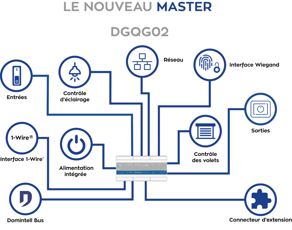 Toujours plus performant, le système Domintell ne cesse d’évoluer au gré de nos innovations. Pour cela, Domintell lancera prochainement son nouveaux Master “Tout-en-un” DGQG02.