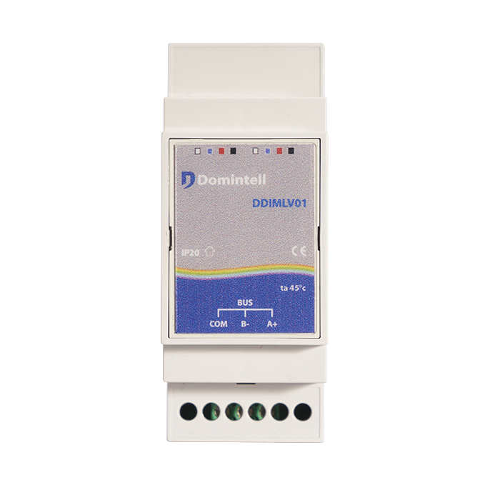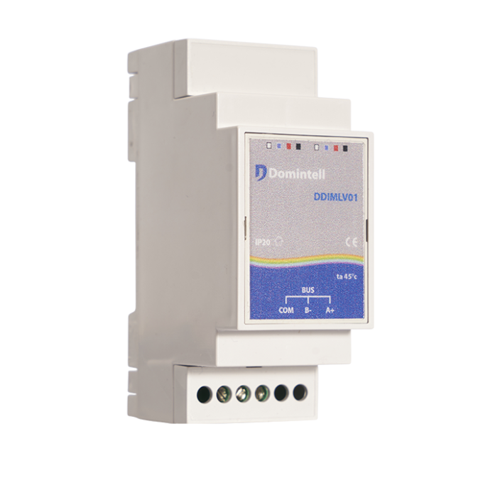 Module d’interface entre le bus Domintell et le Domintell LightBus. Il permet donc de commander les dimmers basse tension d’une installation avec LightBus.